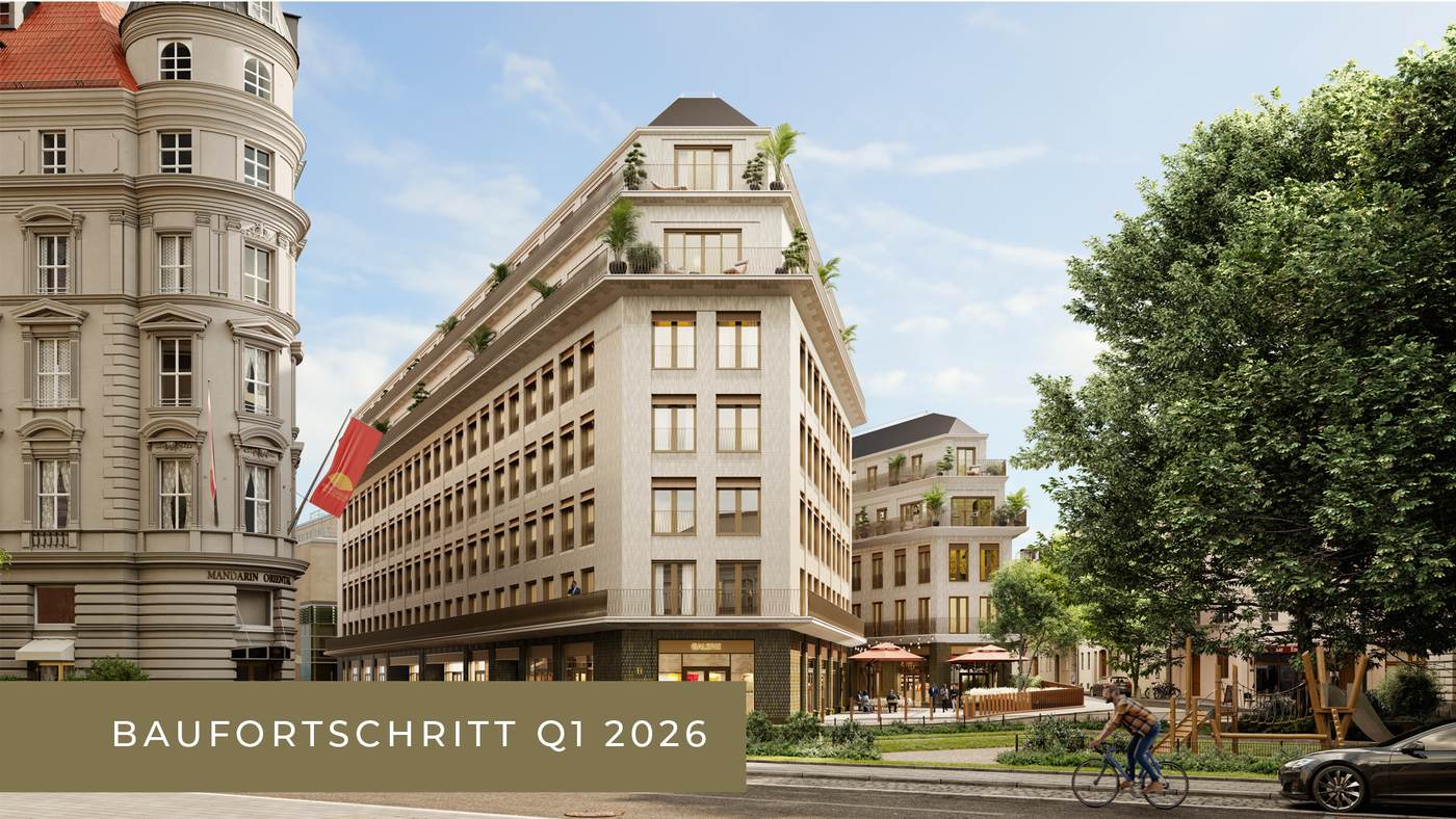 Im Laufe des Jahres 2026 nimmt das Ensemble zunehmend Gestalt an: Mit Start der Fassadenarbeiten wird das Erscheinungsbild Schritt für Schritt sichtbar – parallel schreitet der Innenausbau weiter voran.